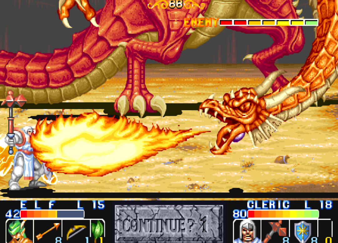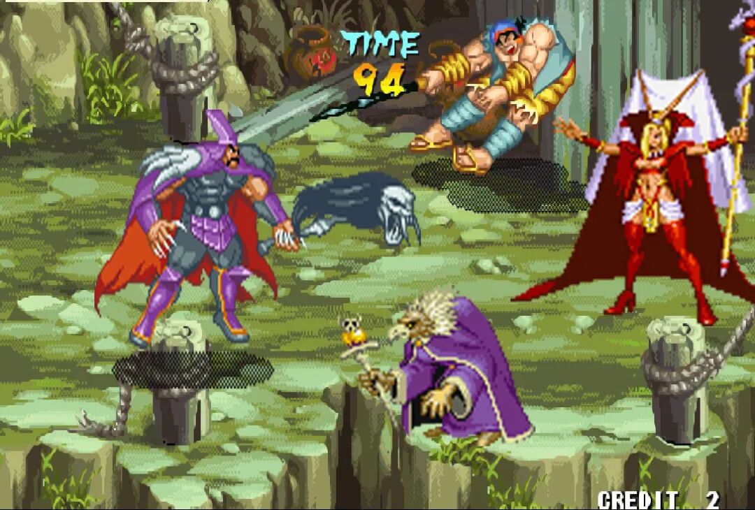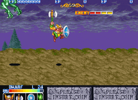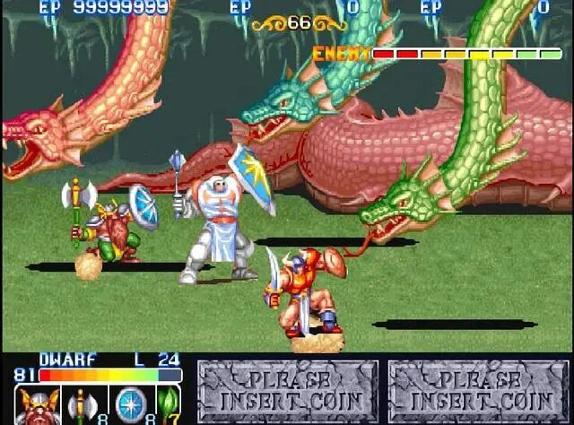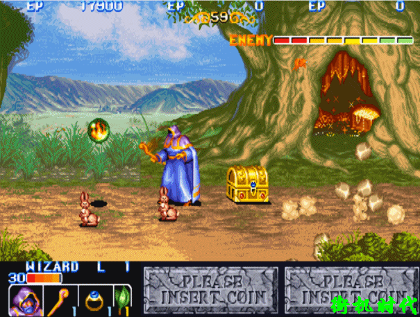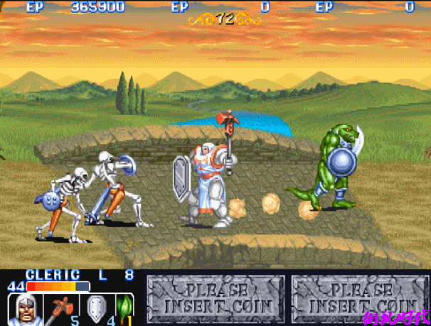 并不是大家熟悉的《三国志》、《恐龙快打》、《快打旋风》、《惩罚者》、《合金弹头》这些经典游戏(就没几个人能一币通关)。而是CAPCOM的一款带有浓浓西方魔法世界味道的RPG类过关游戏:《龙王战士》。