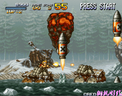 《合金弹头》的时间比较特殊,只要切换场景时间就会重置,因此我们根本不用担心时间不够的问题。放开手脚地刷吧!