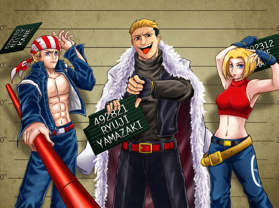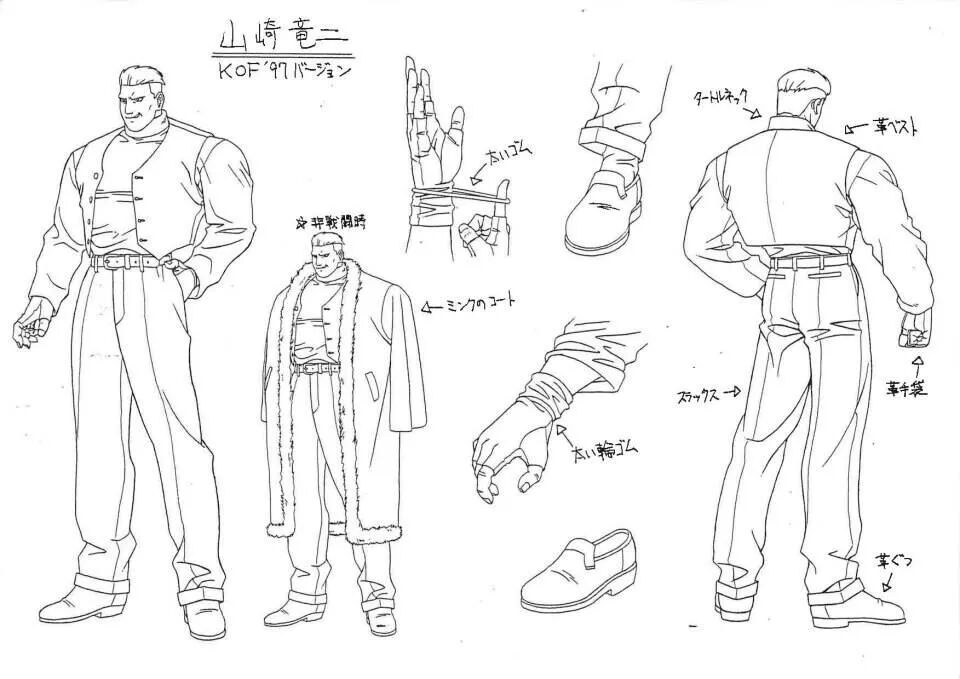 在《拳皇97》人物征集的评选中,山崎龙二居然是名列榜首。正好八杰集这边缺一个人,看他的形象和气质还蛮符合的。