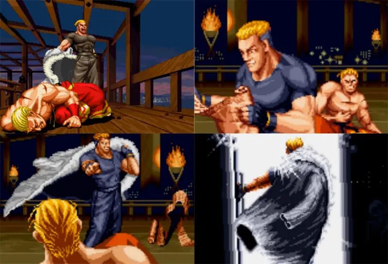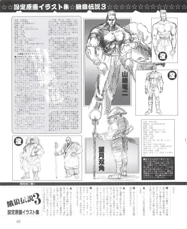 《饿狼传说》时期山崎龙二是作为“黑老大”的身份出现的,前期还算是一个小BOSS,后期就融入到普通角色中了。