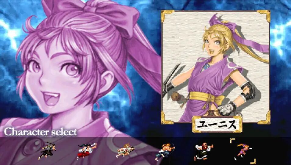 《武装飞鸟》是一款竖版飞行射击游戏,操作方式和《战国之刃》完全不同。为了让这个角色融入进行,专门设计了新的贴图和攻击方式,同样是游戏中非常好用的。