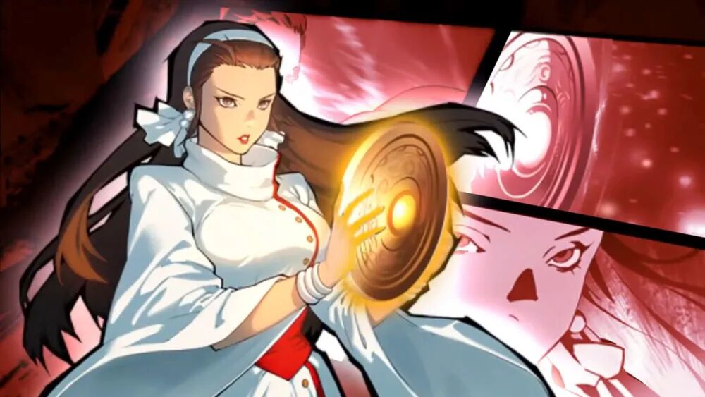结果神乐千鹤就这么被延迟到《拳皇96》时期才登场,作为三神器其他两人的引导者,同时也是故事串联的核心人物。