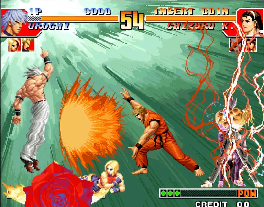 从《拳皇97》开始,挑衅键就直接换成了start案件,在主机平台稍微有些不同,不过都是单键就能释放。也是从此时开始,失去了挑衅减能量的效果