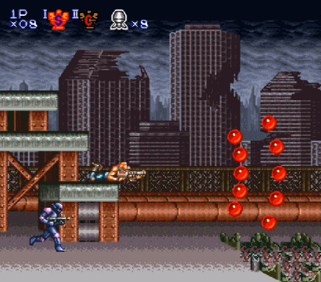 《魂斗罗:铁血兵团》的难度不在《魂斗罗3》之下,节奏一样很快,但却巧妙地加入了血槽系统,这就降低了一部分的难度。