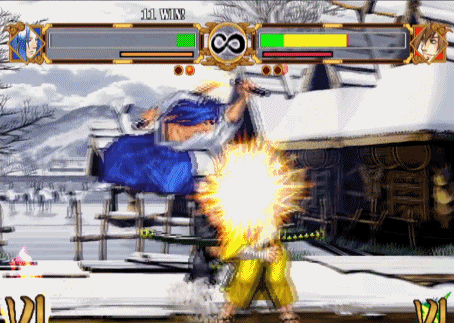 在最初的版本中,橘右京的招式也就只有那么两三招,而且简单明了:秘剑细雪、秘剑燕返