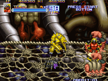 这些游戏虽然是在怪物体内进行战斗,不过好在怪物的体型比较大,也说得过去。当年我们玩过的一些街机游戏,却出现了进入体型不大的BOSS体内战斗的场面,多多少少有些违和感。