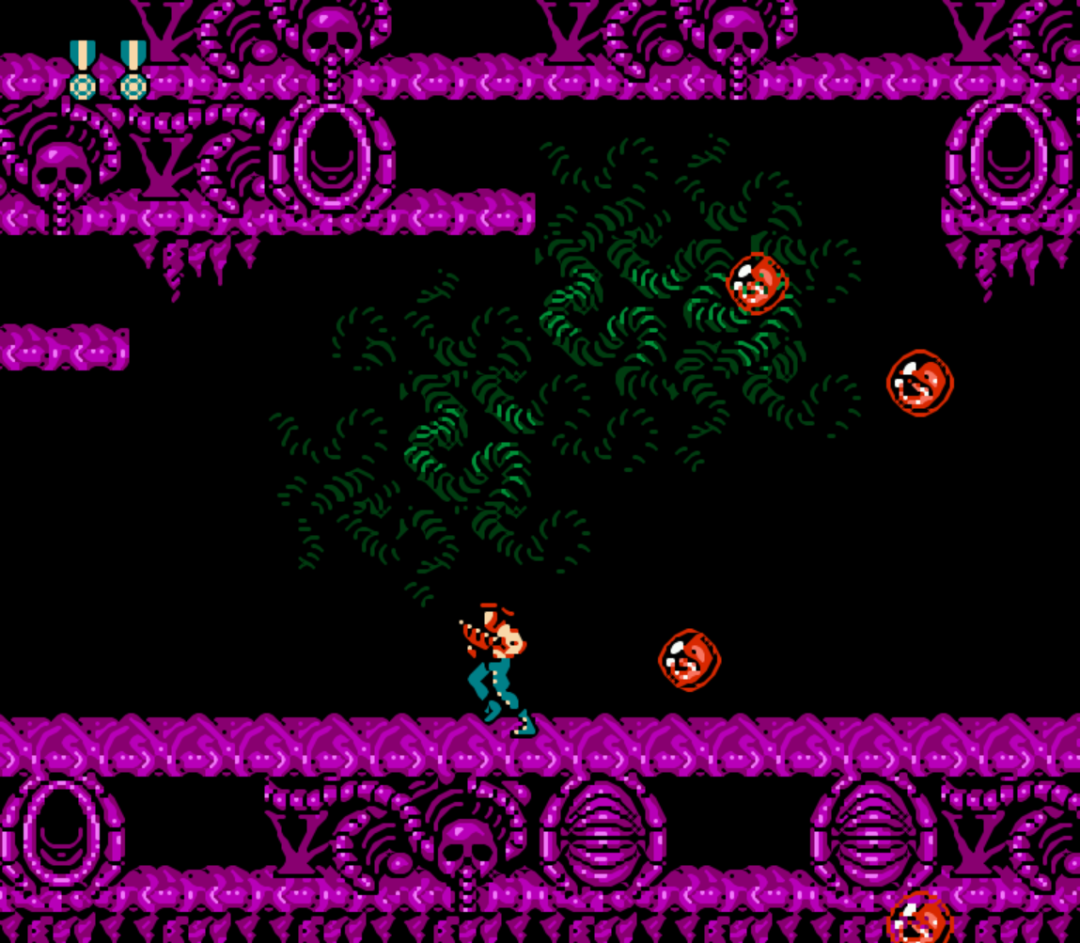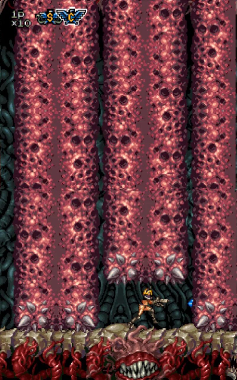 《魂斗罗3》和《魂斗罗4》的画质相对比较清晰,因此我们可以直观感觉到所遭遇的战斗,其实就是陰獣魔神像肚子中的寄生虫,以及它身体自带的免疫力。而侵入的人类,则是类似病毒一般的存在,一不小心就被灭掉了。