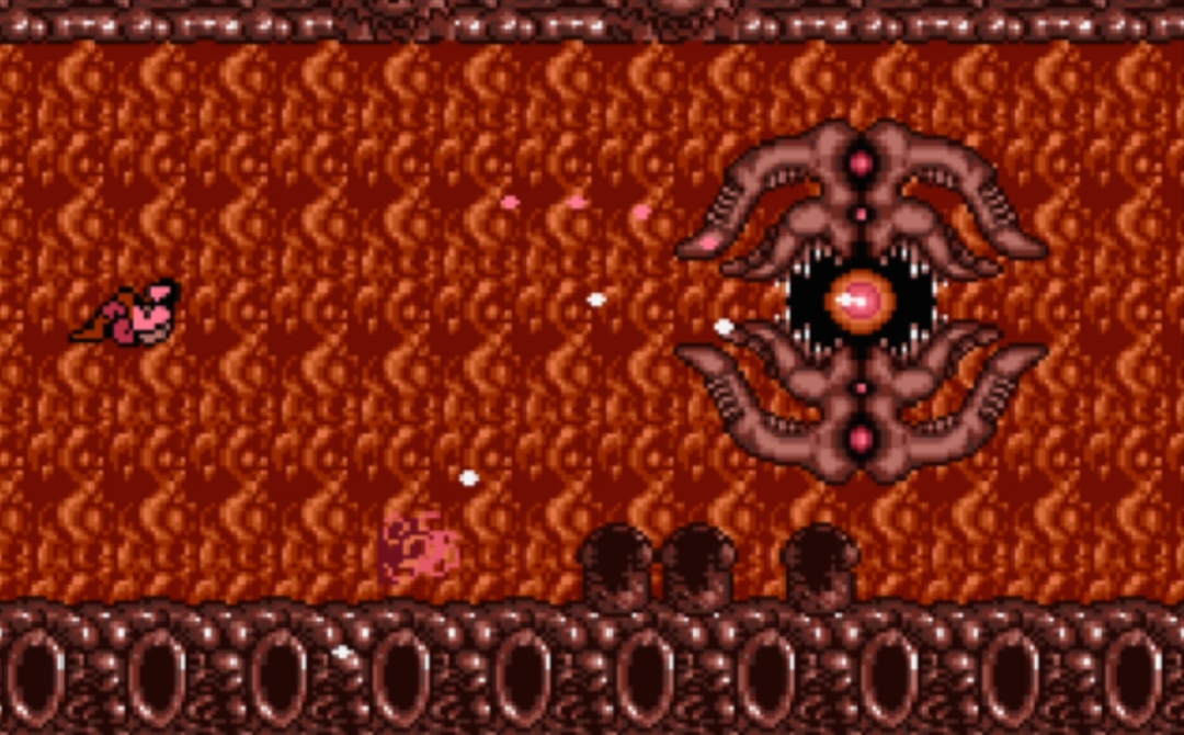 FC版本中虽然也是在BOSS体内进行的,但是看不到进入BOSS体内的画面。