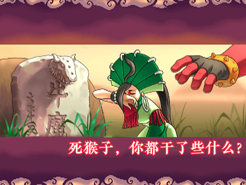而牛魔王也不是吃素的,直接来个元神出窍,进入自己肚子中和春三十娘大战。最最搞笑的是,发生这个情节的时候正好是月光宝盒开启时间,于是牛魔王就这么连续被砍了好几次肠子。