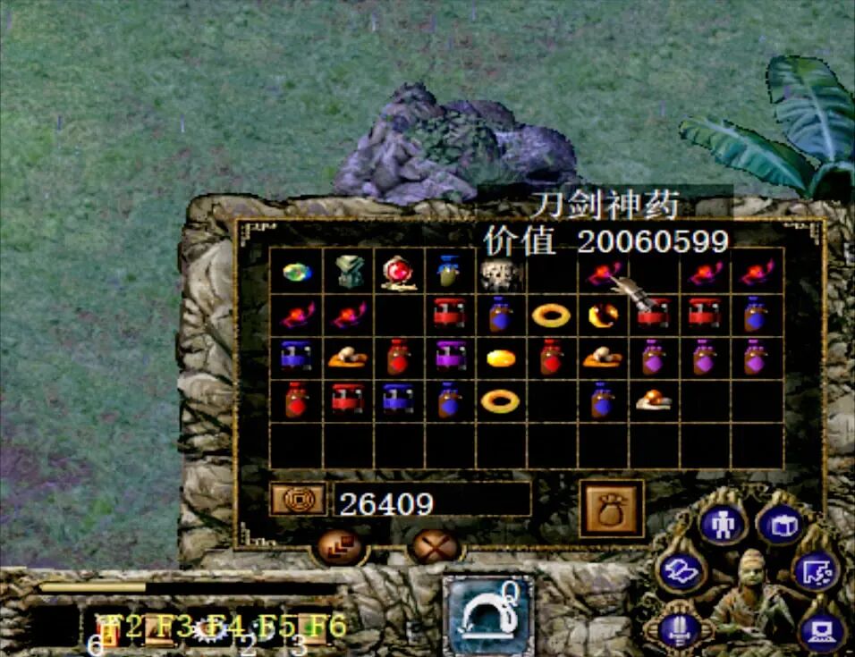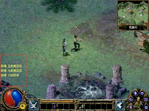 刀剑天书在左下角,而且还是在一个被遮住了一般的石头中。