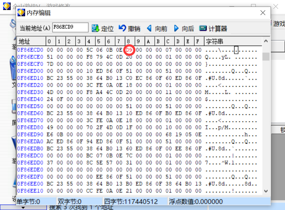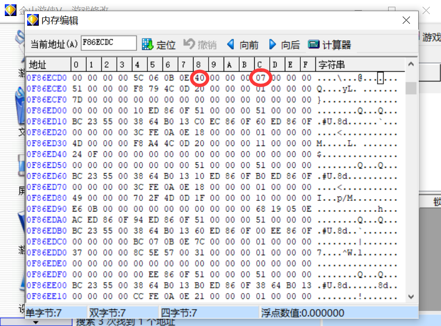 在第一行我们会看到物品的代码和数量,40就是虎牙圈,而07则是它的数量。了解到这个后,基本上你想改什么东西都可以了。