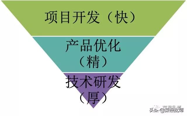 这是一个漏斗模型,在人力和时间分配方面,自上而下优先级逐级递减。项目开发直接面对着需求,它的核心是"快",要有快速响应需求的能力,以最快的进度完成产品的增量交付。为了更快的响应,在架构设计、程序开发方面遵循"适可而止"的原则,不要过度设计,在可容忍的范围内可以适当降低程序的质量。如果仅仅只做这些,我们的产品和系统是早晚都会出现问题,所以我们还需要下一个环节:产品优化。这个环节的核心是"精",精益求精,将以前的瑕疵、隐患去除掉,考虑到更久的将来,不断地调整我们的架构,不断优化我们的程序,整个改进的进程和系统的发展进程相呼应,保证系统的平滑发展。仅仅这些就够了吗?显然不够!项目开发如何快?产品优化如何精?源于我们深厚的积累,研发的重要性就是体现在厚积薄发,全面提升整个团队的技术厚度,提高开发的效率。我们团队有自己的框架和平台,大大的加快了我们项目开发的速度。