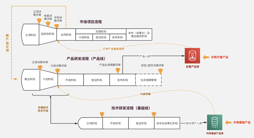 按照IPD研发模型,产品研发是一个企业级的,需要紧密配合,覆盖全过程的复杂的企业活动,如下图所示。只有对产品存在敬畏之心我们才能真正把产品作为企业活动的核心环节,才能保证生命存在持续的活力和竞争力,成为企业发展的动力。