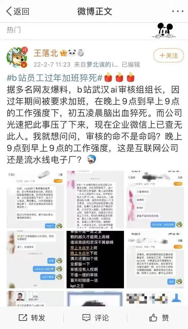 据多名网友爆料,B站武汉AI审核组组长,因过年期间被要求加班,在晚上9点到早上9点的工作强度下,初五凌晨脑出血猝死。