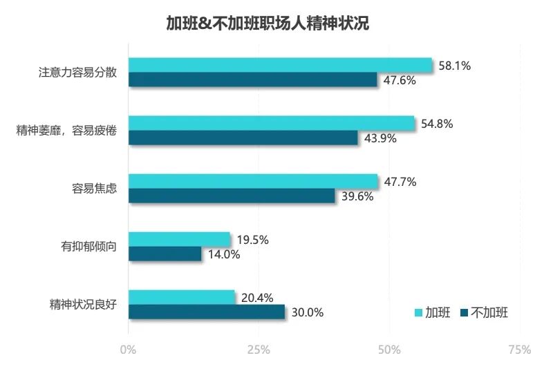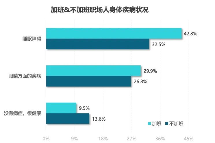 2021年5月17日,世界卫生组织(WHO)和国际劳工组织(ILO)发表了全球第一份关于长时间工作对健康影响的调查报告,该报告表明,与每周35-40小时的正常工作时长相比,每周工作超过55小时的人患心脏病和中风的风险更高。加班对职场人的睡眠和精神状况都产生了不良影响。