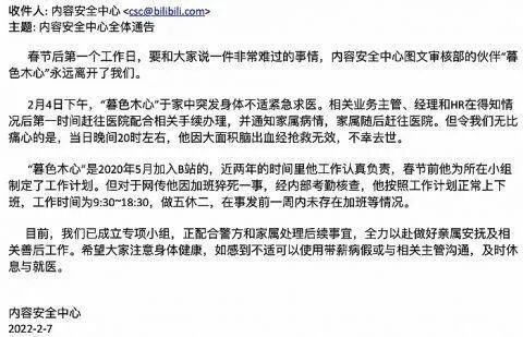 B站第一时间也确认了这个事件真实有效,但否认该员工因长期过度加班导致死亡,并表示会协助做好相关善后工作。