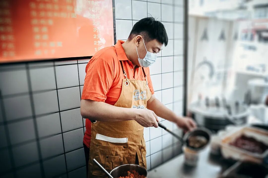 一天,他路过一家面馆,见门口贴着招工启事,工资比当保安多200元,径直闯了进去。