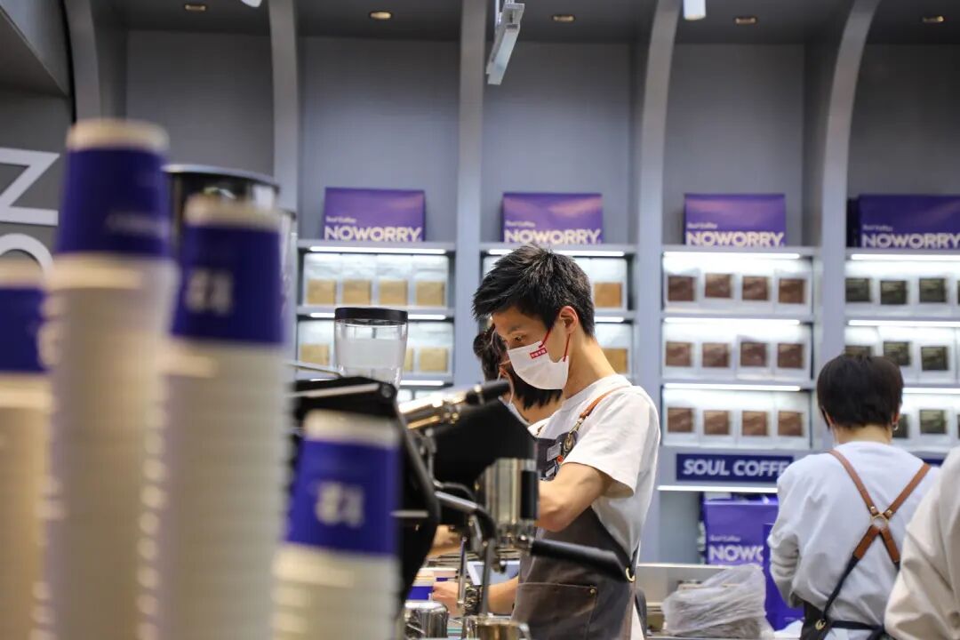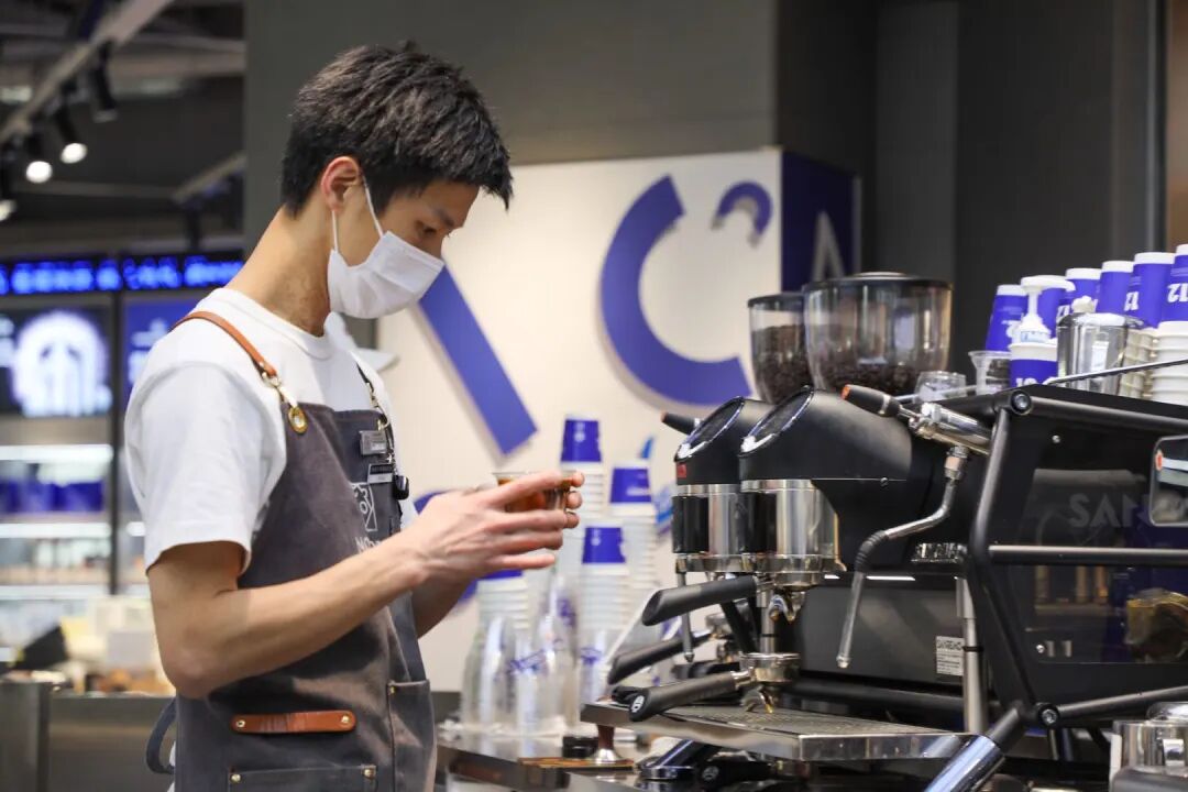 咖啡豆随时补足,吧台奶渍清理干净,空杯刷得一丝不苟……在吧台上工作的吕游,对“徒弟”们是极尽“苛刻”的。