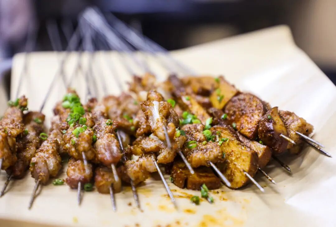 “扛把子”应属烤牛油和肉筋了。“我家猪肉选的中粮佳康的,贵但好!”身为老板的她,对选材非常苛刻,都是自己亲自去挑、去买。“客人吃的是现切现串现烤的,新不新鲜,舌头晓得!”