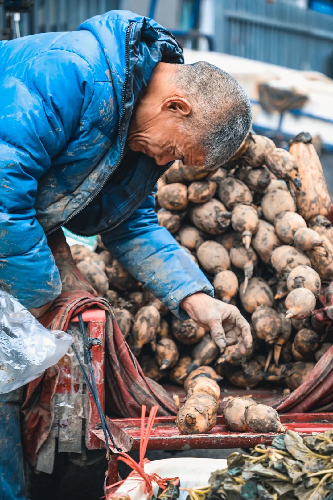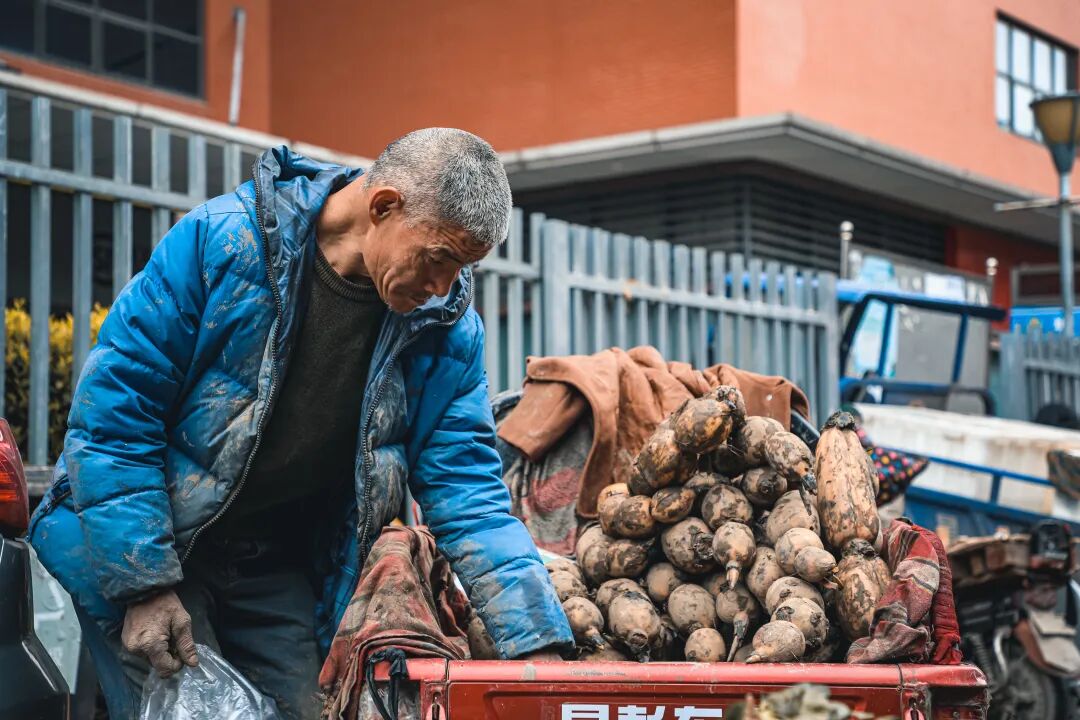每天凌晨5点,老周早早的骑上小三轮,拉上哥哥挖的藕到市场贩卖。