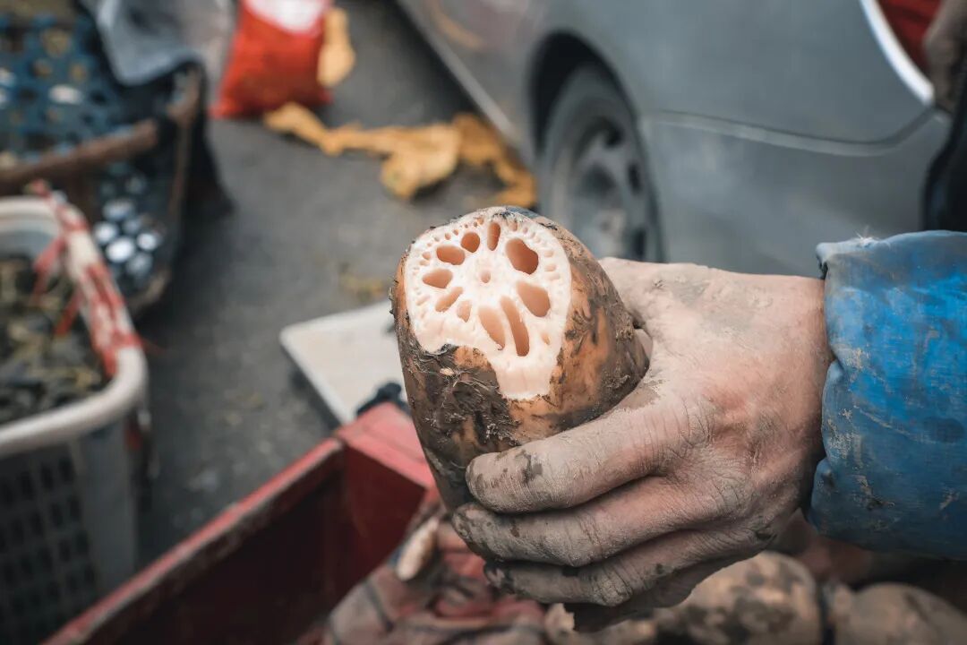 面对堆积如山的藕摊,老周说,菜场上白净藕好卖,但多半是柠檬酸泡过,里边发黑……莲藕自带的泥土是用来保鲜,糊着黑泥的良心藕因颜值太低,人们怕麻烦都不愿意买,很多收购商也不愿意采购。即便如此,老周数十年坚持卖黑泥藕,新鲜莲藕都必须带着泥土,看起来的确挺丑的,但清洗之后却是白净粉嫩,吃的也很安心。