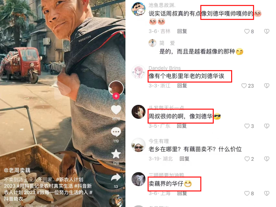 粉丝称老周为“卖藕界的华仔”