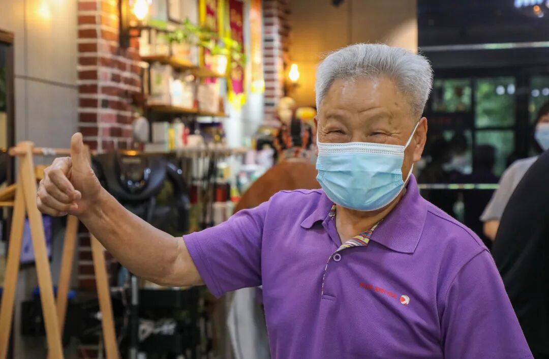 “我70岁过来理发,今年都80了,剪了10年一分钱没收。”贺爹爹拄着拐杖起身,伸手向苏昶铭点了个赞。