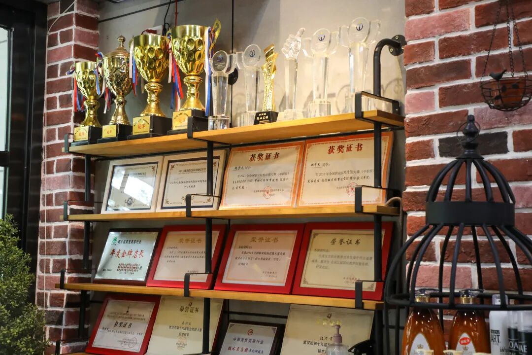 门店中最“豪华”的装饰,要数墙边的柜子,摆满了各类比赛获得的奖状和奖杯。难怪苏昶铭说:“我这一辈子只钻研了一件事。”