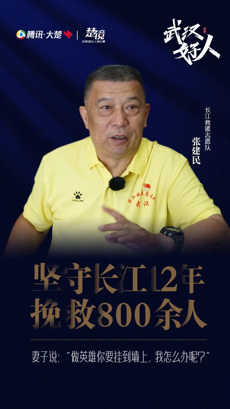 从2006年开始,张建民就在长江边开始巡查救援,2008年退休后基本上全部精力都投入长江志愿救援活动。从2010年参与组建武汉长江救援志愿队至今,张建民已经和这支队伍风雨兼程走过12年。从一开始的上百名冬泳爱好者,到如今40多支队伍2000多名救援队员;从一开始的默默无闻,到被中宣部授予“时代楷模”光荣称号,张建民无不亲历其中。