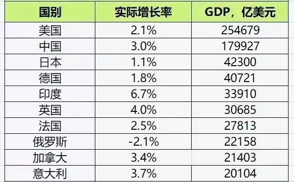 2022年全球GDP前十强依次是:美国、中国、日本、德国、印度、英国、法国、俄罗斯、加拿大、意大利。前两名短期内位置稳定,日本的位置已经不稳,德国正在赶超,而印度又在追赶德国,大有赶超之势,俄罗斯的排名存在不确定性,波动较大。