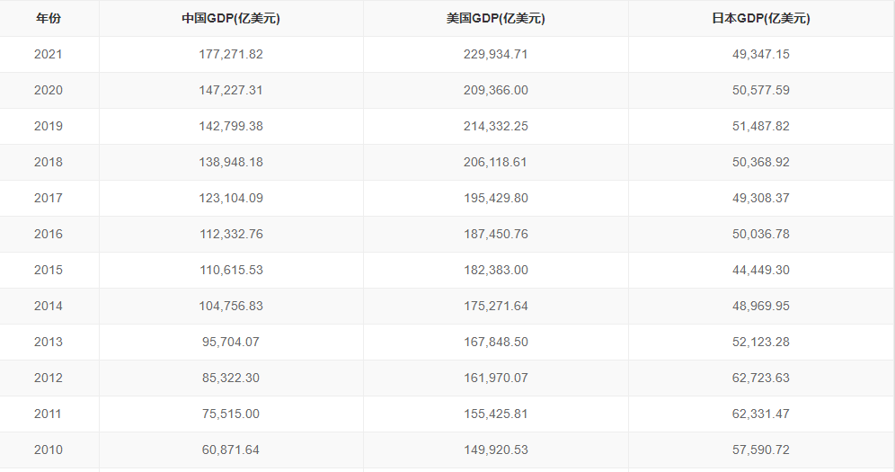 其中,仅有中国、美国的GDP规模超过10万亿美元,日本作为世界第三大经济体,GDP20多年来基本上没有什么进步,仍然处于5万亿美元上下,去年日本GDP跌至4.9万亿美元,德国已经追赶上来,英国、印度等国都处于3万亿美元左右。