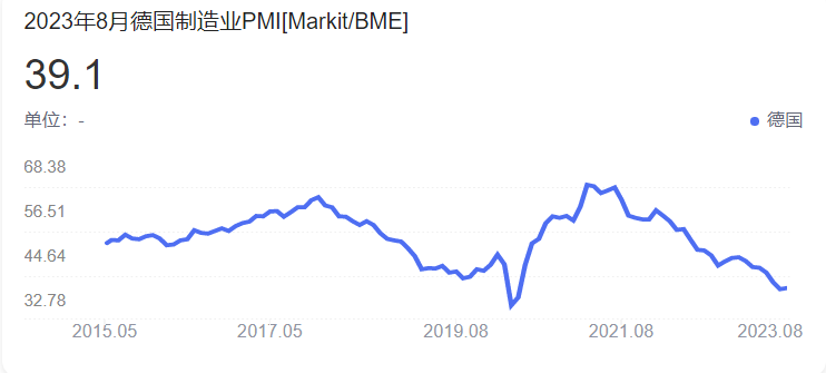 德国一直是欧洲制造业的中心,但是德国8月制造业PMI跌至39.1,要知道我们最差的时候PMI也没有跌破40%,可想而知德国制造业现状有多惨淡,尤其是失去了俄罗斯稳定能源供给后,德国制造业成本优势丧失。