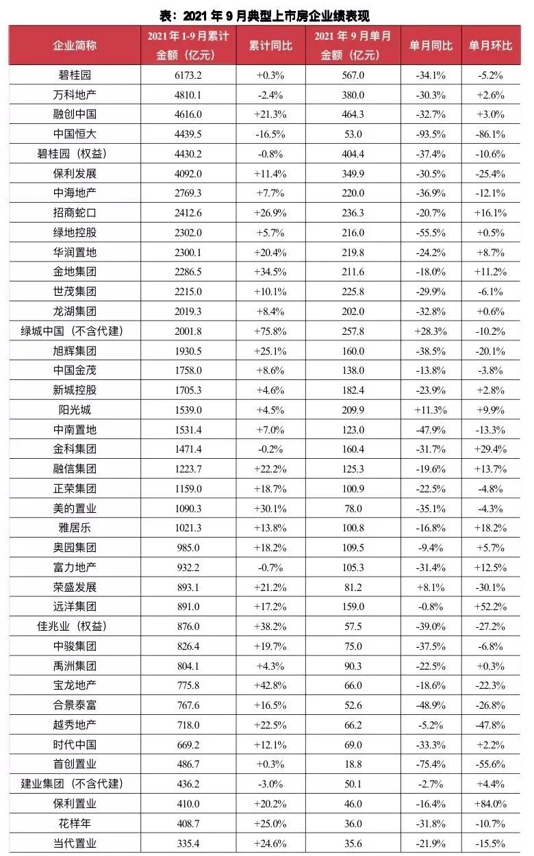 今年9月,百强房企实现销售全口径金额8443.4亿元,同比大跌36.6%。尽管9月是传统销售旺季,但百强房企销售业绩环比8月首次出现下降,降幅为6%。