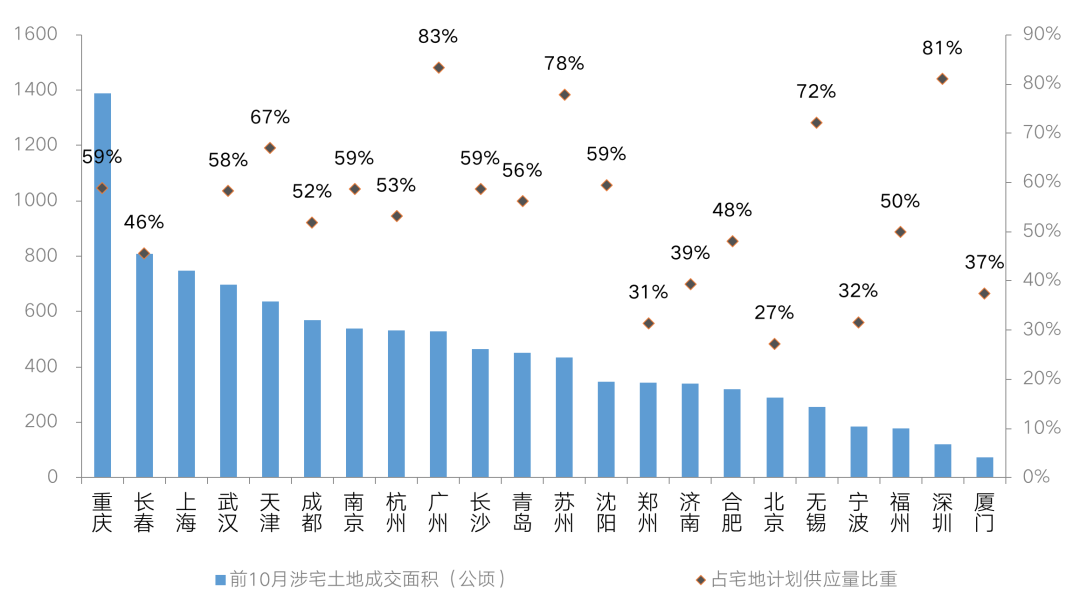 22城前10个月供地规模占全年宅地供应计划的比例(公顷)