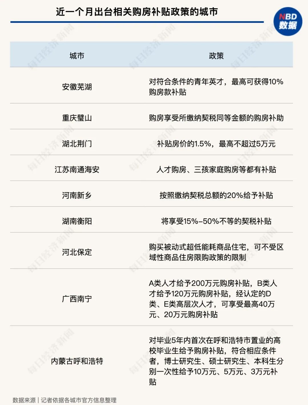此外,湖南衡阳、河北保定、广西南宁、湖北荆门、河南新乡等城市也出台了各种五花八门的鼓励购房政策。
