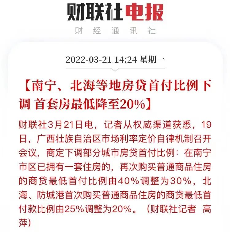 虽然降首付对真刚需有帮助,但防城港、北海、南宁这三座广西城市,一起降首付的目的,绝不止于此。