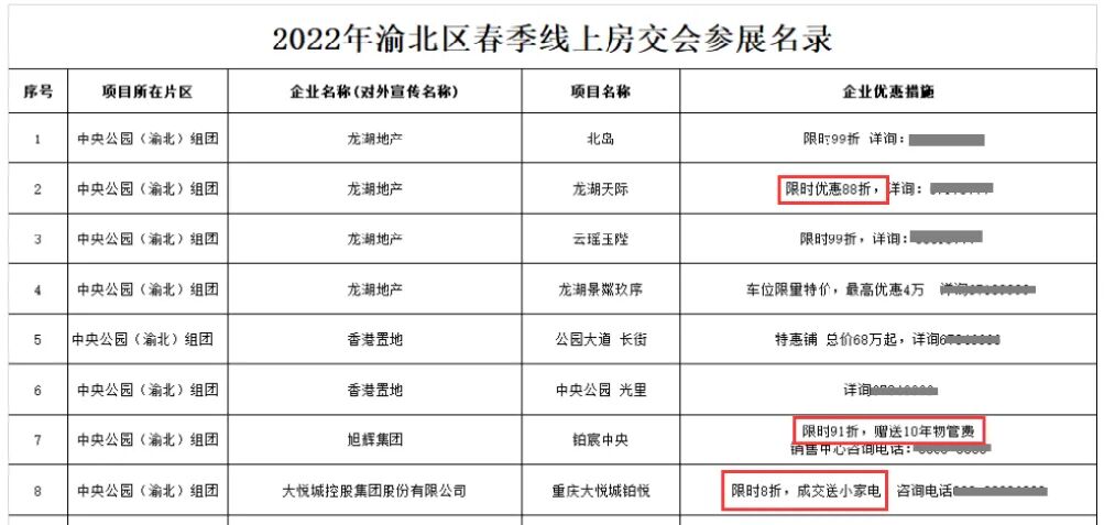 近期重庆渝北区、沙坪坝区等启动的春季房交会活动上,限时8折、一口价特惠房、直减10万、成交送全屋家电,成为了最具特色的标签。