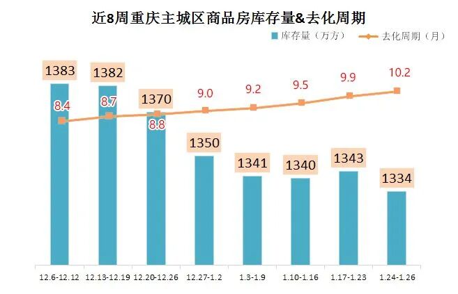 但是如果纵向来比,重庆的新房去化周期从去年下半年以来,一直在增加。