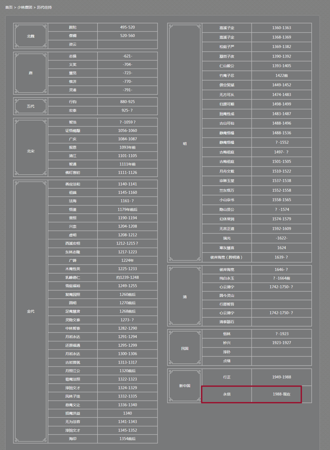 少林寺历代住持