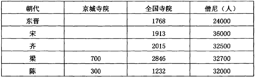与南朝对峙的北朝,北魏末年京城洛阳就有1367座,北齐北周时期,寺庙超过4万,僧尼规约为300万人。