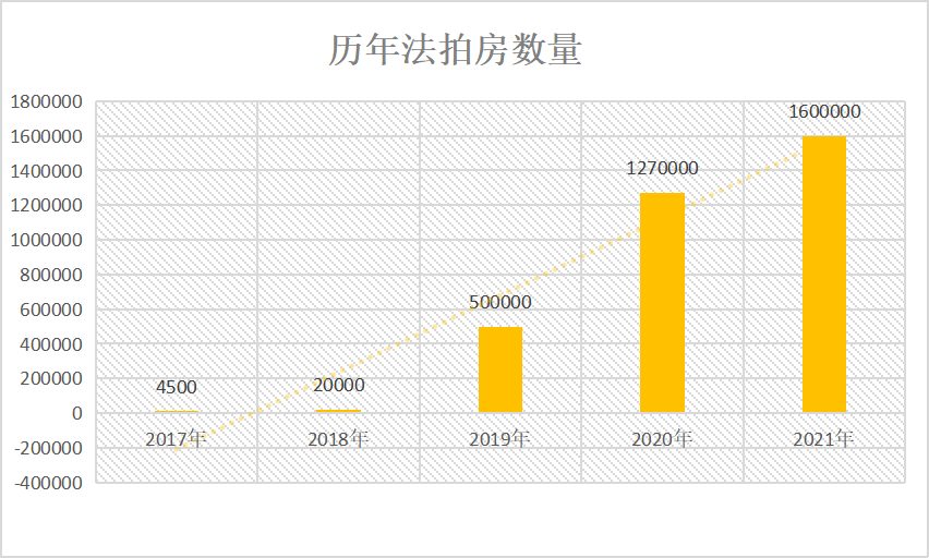 根据阿里拍卖、京东拍卖、公拍网、人民法院诉讼资产网等其它平台综合统计,2021年法拍房数量高达160万套,创历史之最,较2020年增加了26%,是2019年的3倍多,是2018年的80倍,是2017年的356倍。