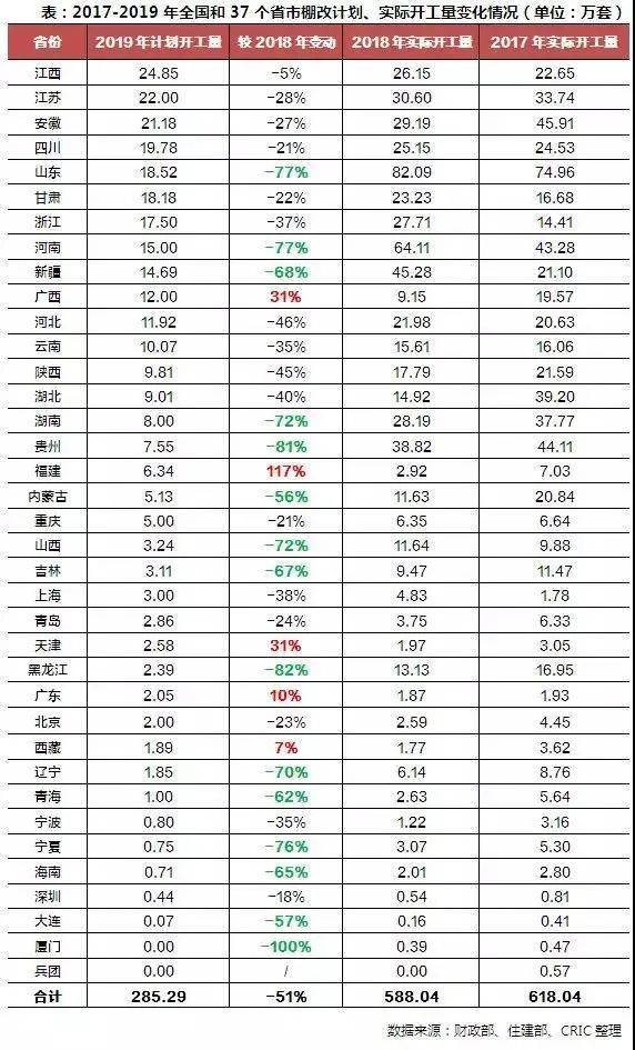 分省市来看,山西2019年棚改量较2018年下跌了72%,山东、河南、新疆、湖南、贵州、吉林、黑龙江、辽宁、宁夏、海南均大跌。