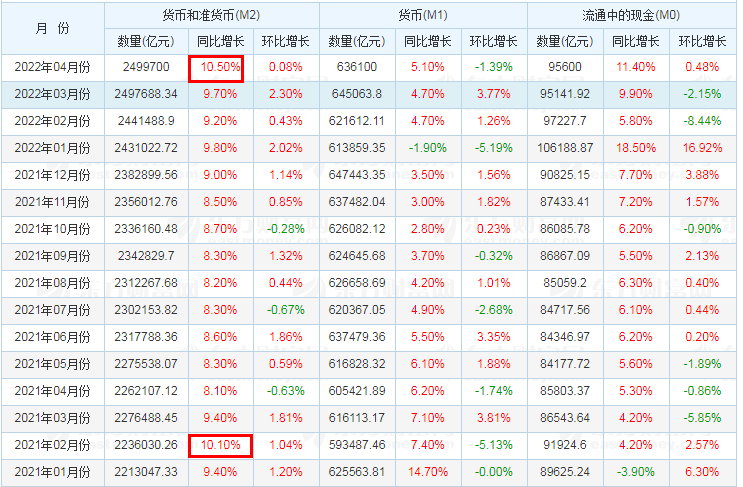 这是继2021年2月份以来,时隔14个月,M2增速重回两位数。
