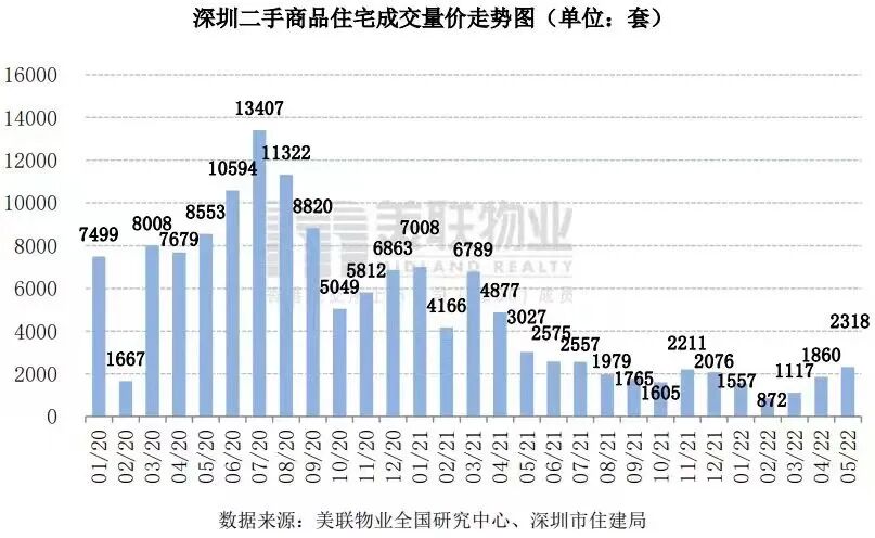 以深圳来看,美联物业的数据显示,截止到5月深圳二手房成交2318套,较4月份环比增长了不少,但从同比和成交的绝对量来看。