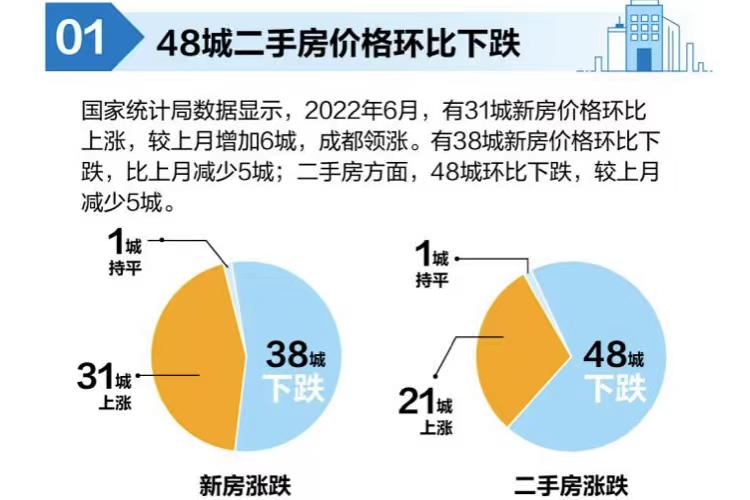 所以,我们能看到,国家统计局公布的最新70个大中城市房价数据显示,6月70城新房和二手房价格上涨城市分别为31个和21个,较上月均增加6个;新房和二手房价格下跌城市分别为38个和48个,数量较上月均减少5个。