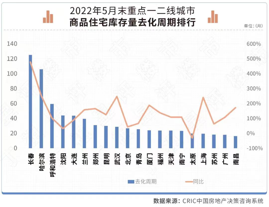 从去化周期角度来看,当下去化周期超高的中心城市主要集中在东北四大城市,前五名中,东北四个主要城市占了四席,呼和浩特、兰州、郑州、昆明、武汉、北京、青岛、厦门、福州、天津、南宁等城市也都在前列。