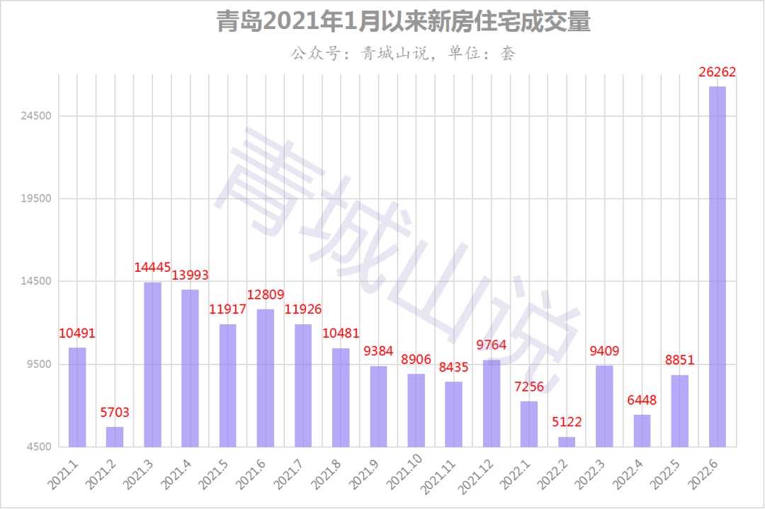 6月份,青岛新房单月成交了26262套,堪称一柱擎天。