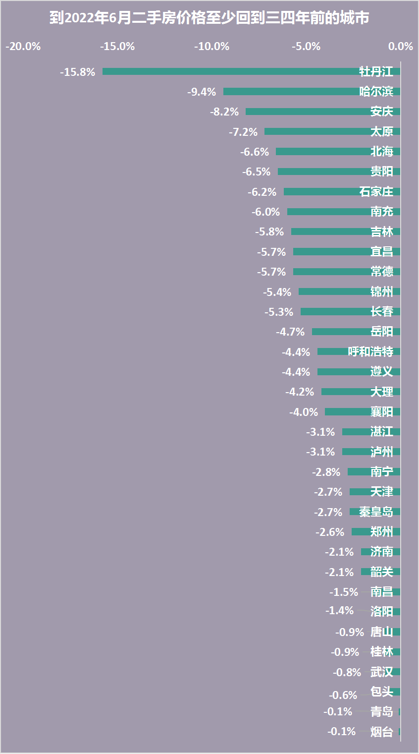 此外,国家统计局数据还显示,大理二手房价格较2020年下跌了4.2%,是房价至少回到三四年前的33个城市之一,基本回到了2018年的水平。