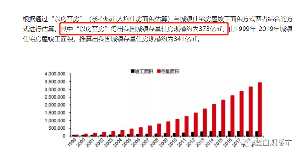中信证券发布过一份估算报告,估算目前全国存量房有373亿平米,如果加上克而瑞披露的广义库存38亿平米,总量已经达到了411亿平方米。