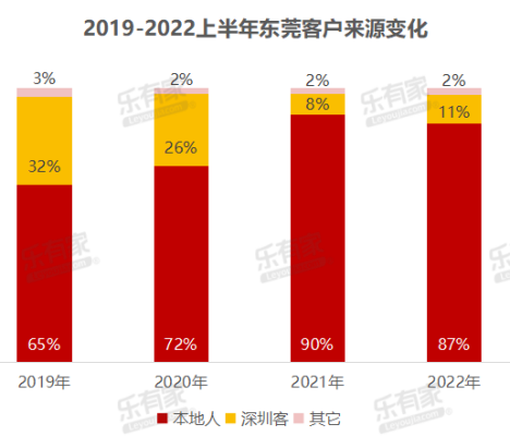 东莞购房群体中,好的时候,深圳客占比接近三分之一,限购之后只占1成左右,不过现在东莞又全盘放开了限购,只保留了城区四个街道的限购措施。